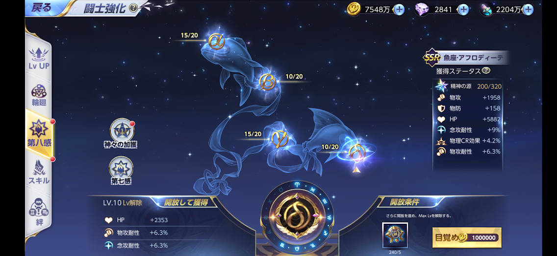 LV80になれば、第八感でも状態異常命中率を上げることが出来るので