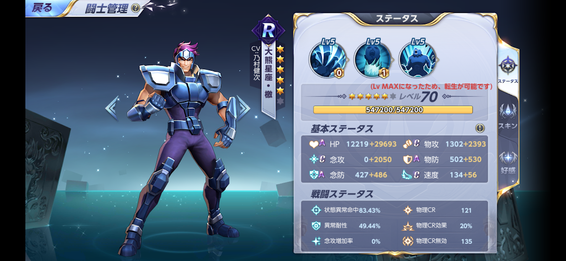 で、次に強化を考えているのが大熊座の激。